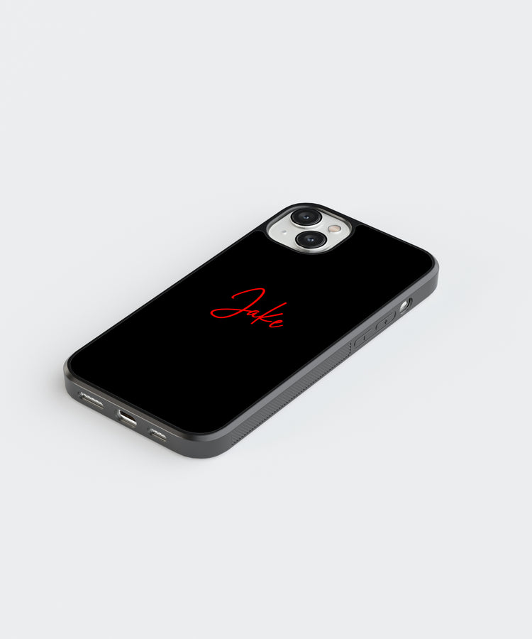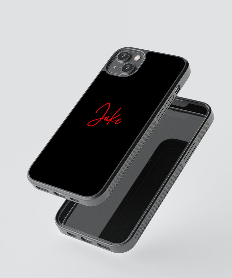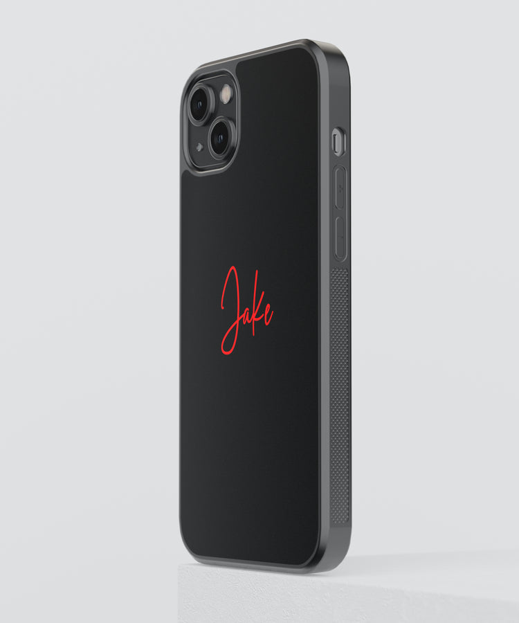 Turn your phone into a bold style statement with the Black Signature Glass Case – Jake Edition. Designed with a deep, sleek black background and a striking red handwritten name, this case delivers a modern, powerful, and premium aesthetic.