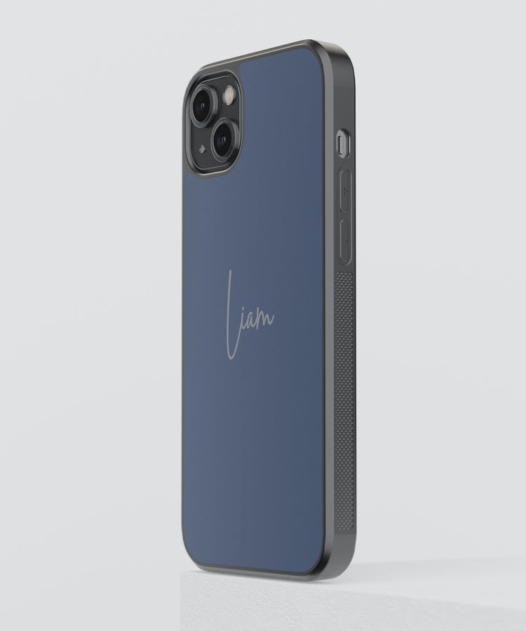 Experience luxury and simplicity with our Midnight Blue Glass Case – Liam Edition. Designed with a deep navy-blue background and a soft minimalist signature-style name, this case delivers a clean, modern, and classy aesthetic for everyday use.