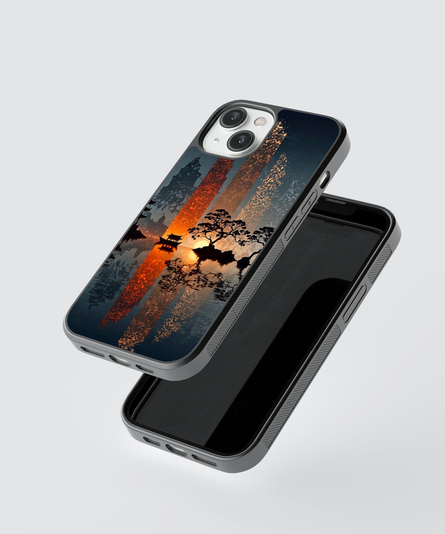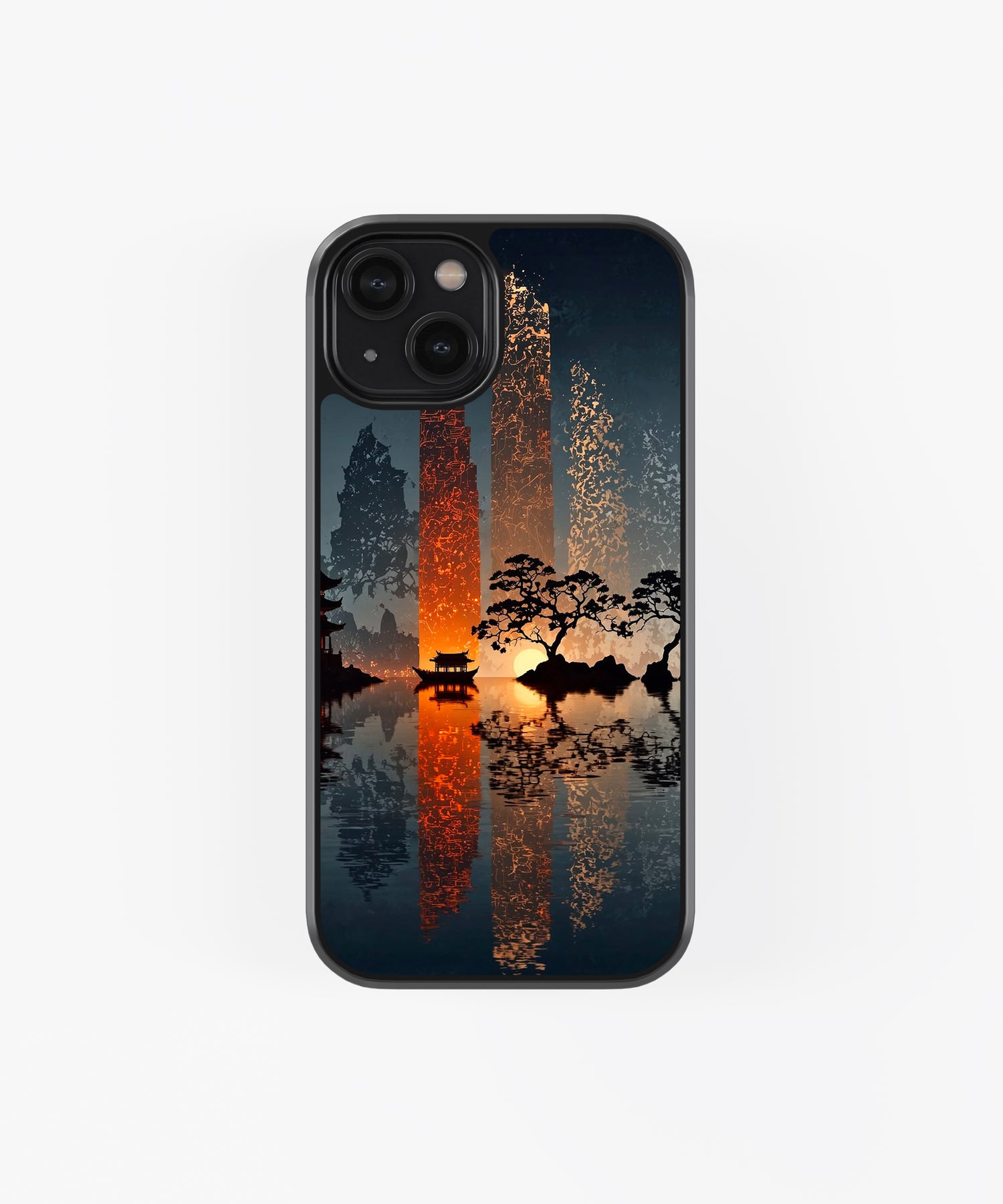 Bring calm and elegance to your everyday style with this Zen sunset glass phone case 🌅🌿. Featuring a serene Japanese-inspired landscape with glowing sunset reflections, silhouetted trees, and peaceful water scenery, this design captures balance, tranquility, and modern minimalism.