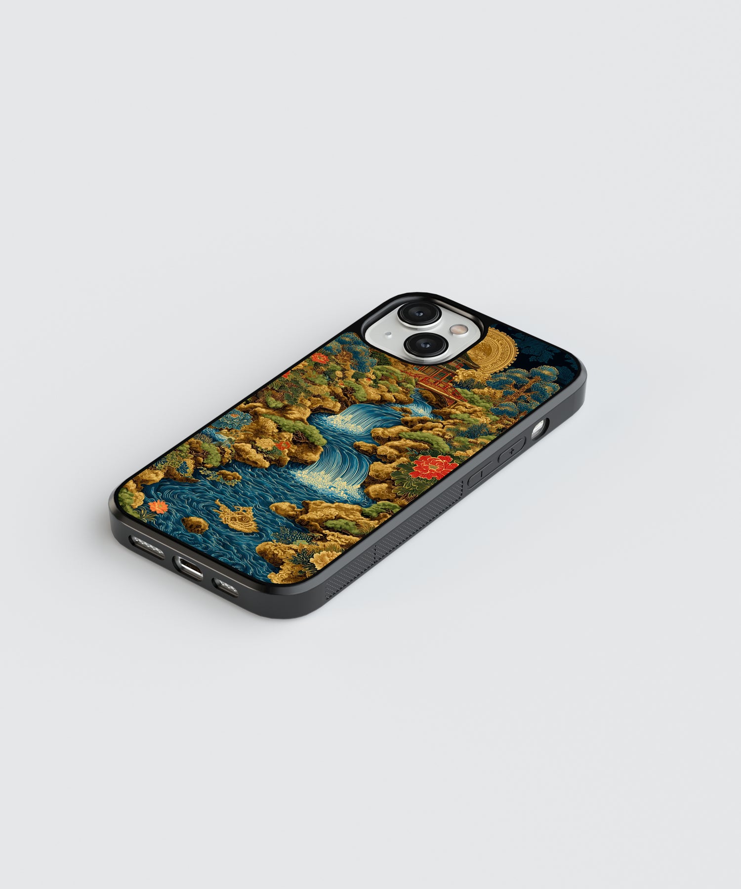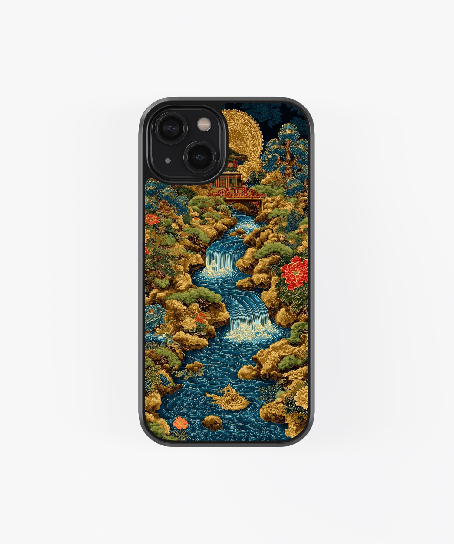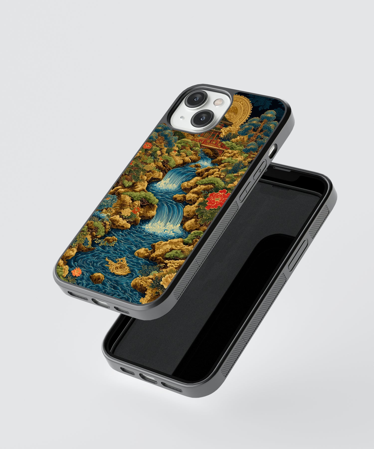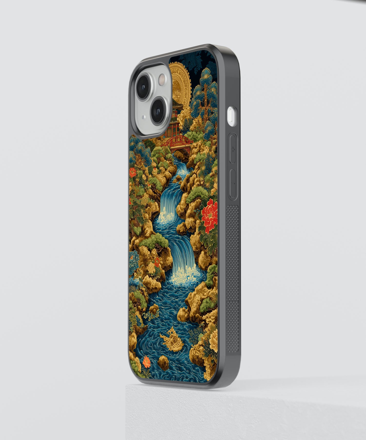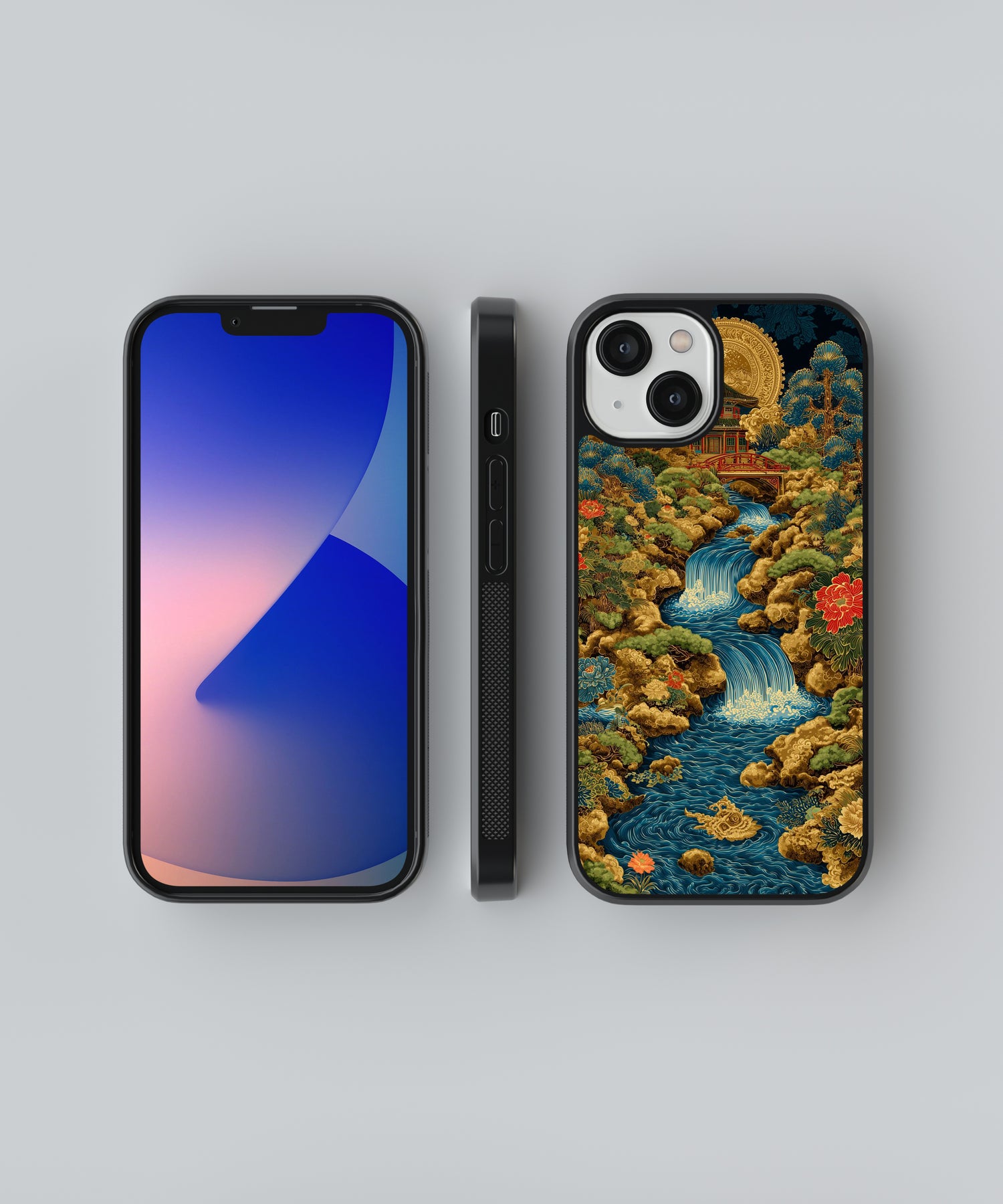 Transform your phone into a work of art with this Golden Japanese Landscape glass phone case 🌸🌊. Featuring a serene waterfall flowing through a lush garden with intricate golden details, traditional bridge, and rich floral elements, this design radiates peace, luxury, and cultural elegance.