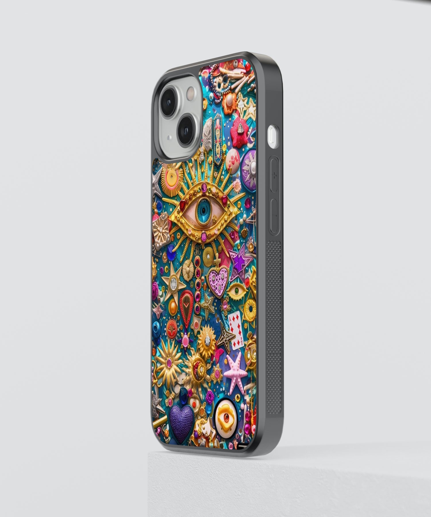 Make a bold statement with the Mystic Eye Charm Glass Phone Case 🔮💫 Featuring a vibrant collage of mystical symbols, charms, and a striking all-seeing eye centerpiece, this design radiates artistic energy and spiritual vibes. Crafted with a premium tempered glass back and shock-absorbing edges, it delivers both luxury style and durable protection. Perfect for those who love unique, colorful, and expressive designs 🌈🧿