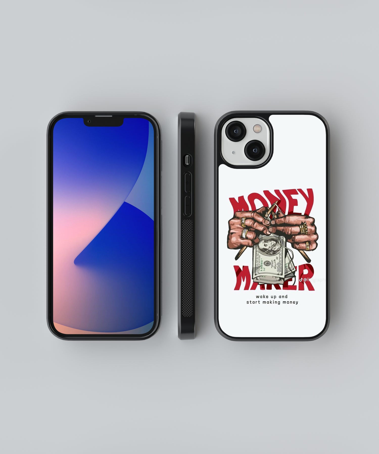 Level up your style with this powerful “Money Maker” glass phone case 💸🔥. Featuring a bold graphic of hands crafting cash with the motivational tagline “Wake up and start making money”, this case is perfect for hustlers, entrepreneurs, and go-getters.