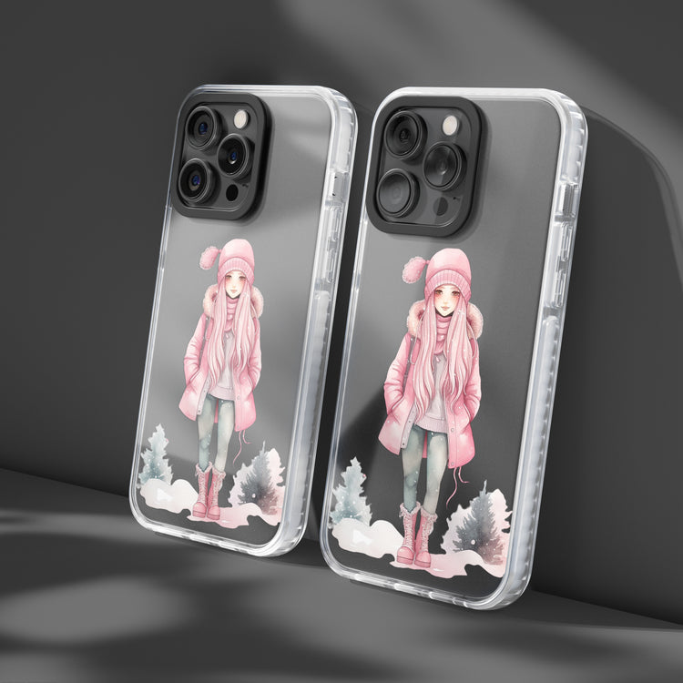 ❄️ Premium Silicone Phone Case – Winter Pink Girl Art