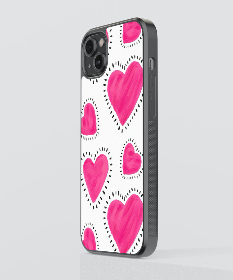 Fall head over heels for this enchanting glass phone case featuring a whimsical pattern of hand-painted pink hearts with playful black radiant lines! This case is perfect for romantics, dreamers, and anyone who wants to carry a little extra love wherever they go.