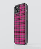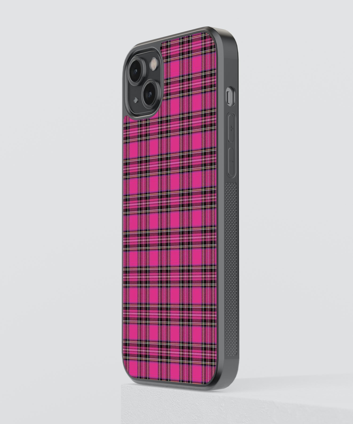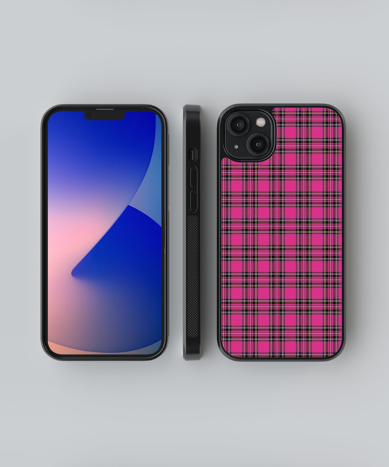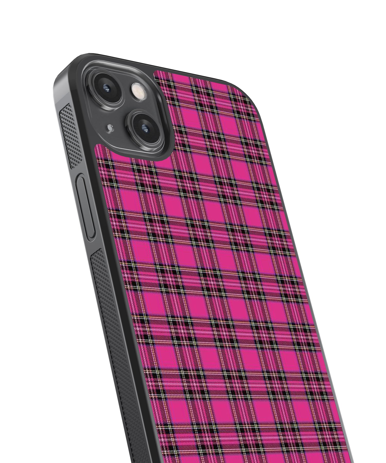 💖 Pink Plaid Glass Phone Case – Stylish, Bold & Scratch-Resistant