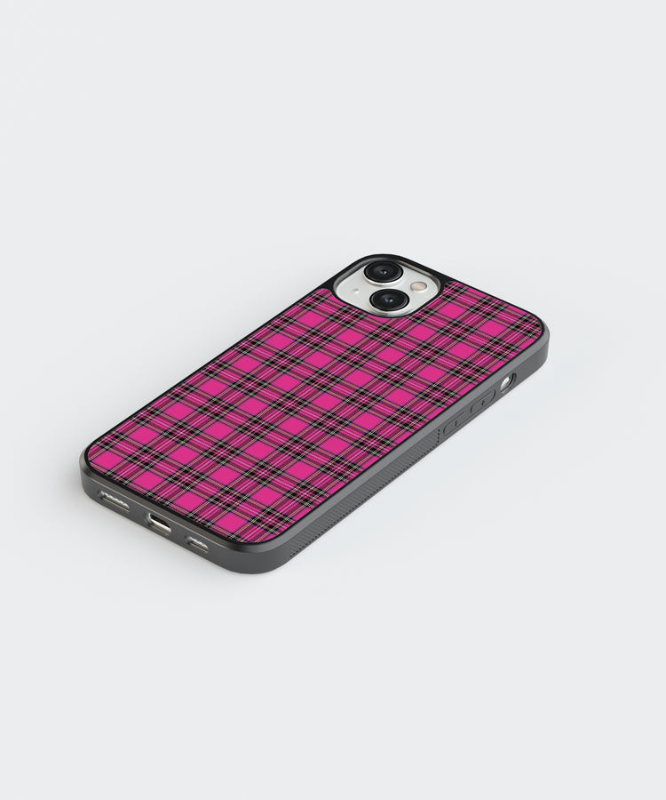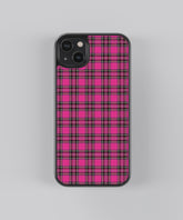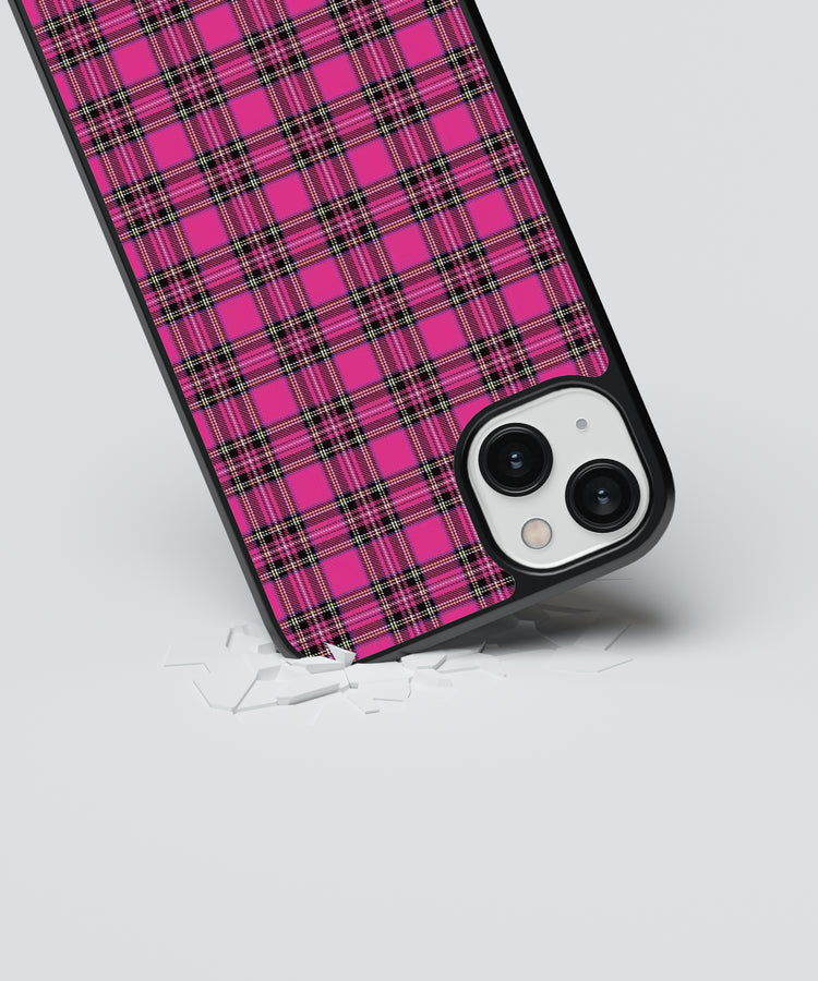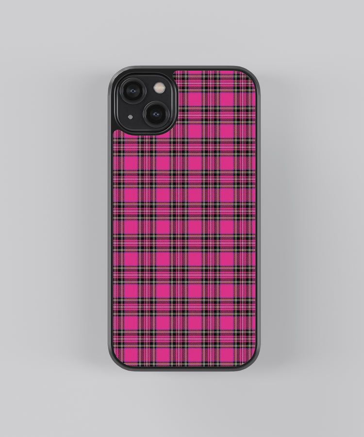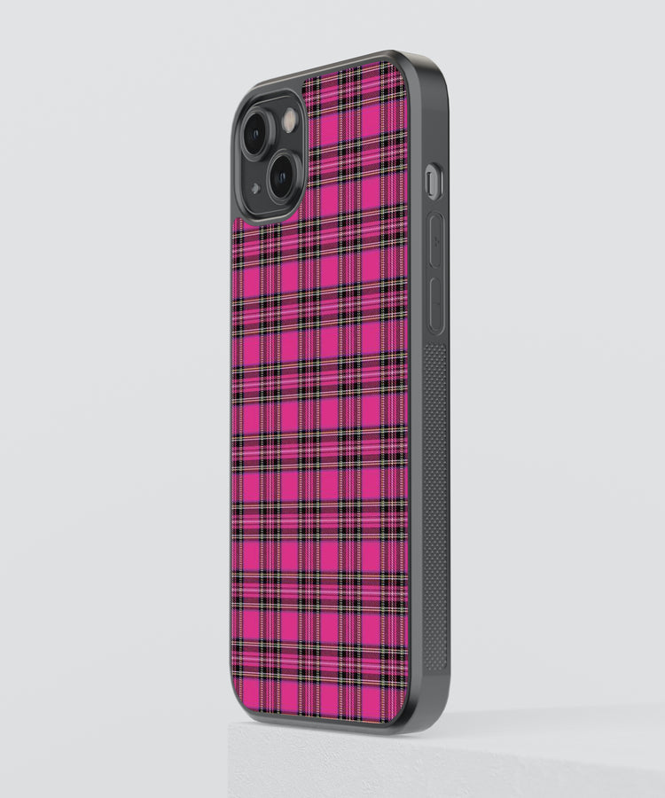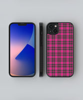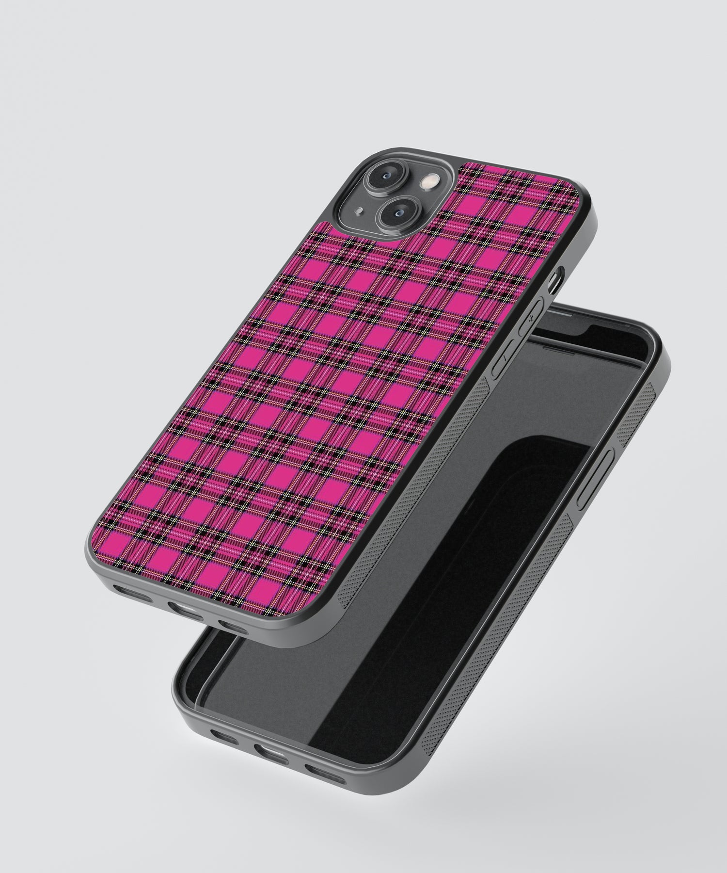 💖 Pink Plaid Glass Phone Case – Stylish, Bold & Scratch-Resistant