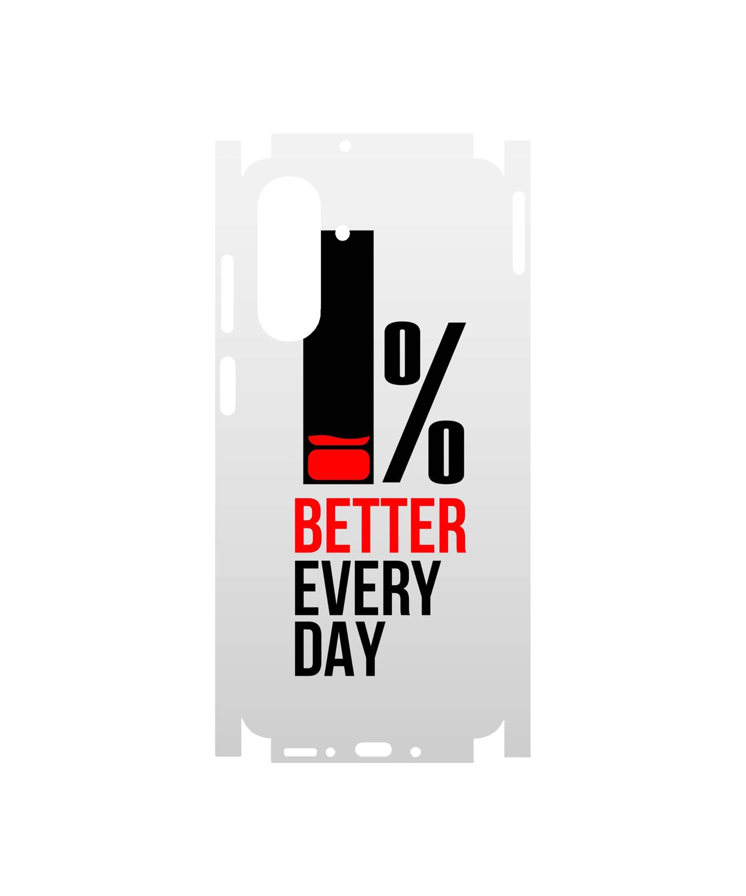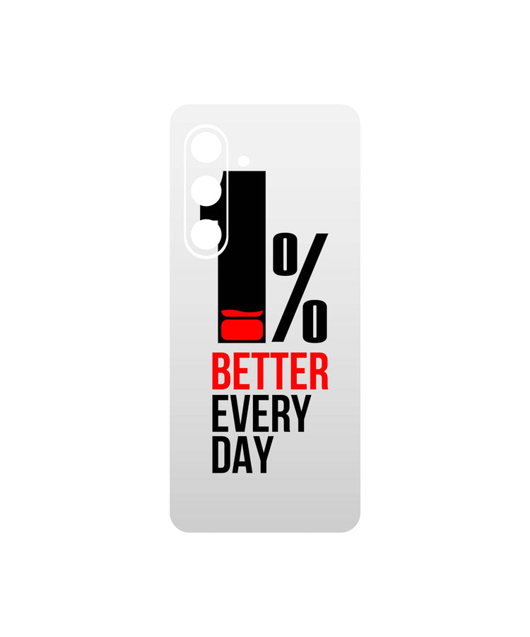 The minimalist design features a clean, light gradient background, highlighting the powerful, concise mantra: "1% BETTER EVERY DAY". The stark black and red typography underscores the seriousness of the goal, symbolizing a daily commitment to progress.