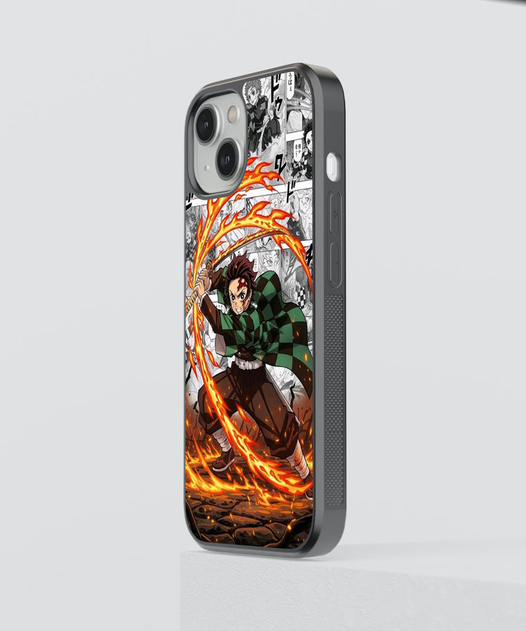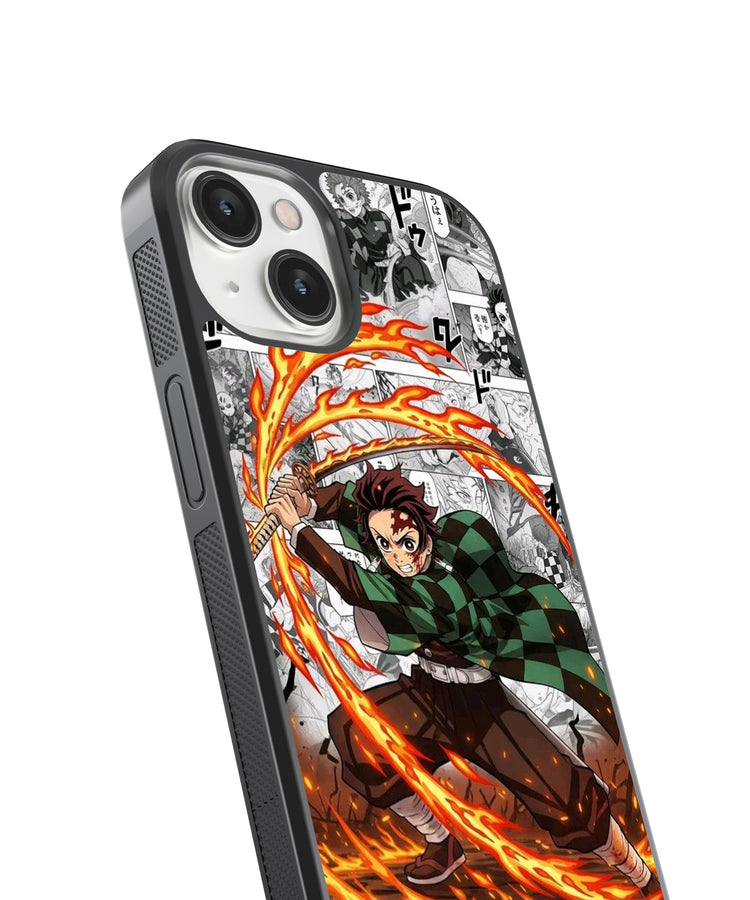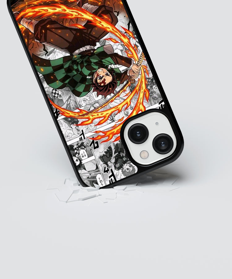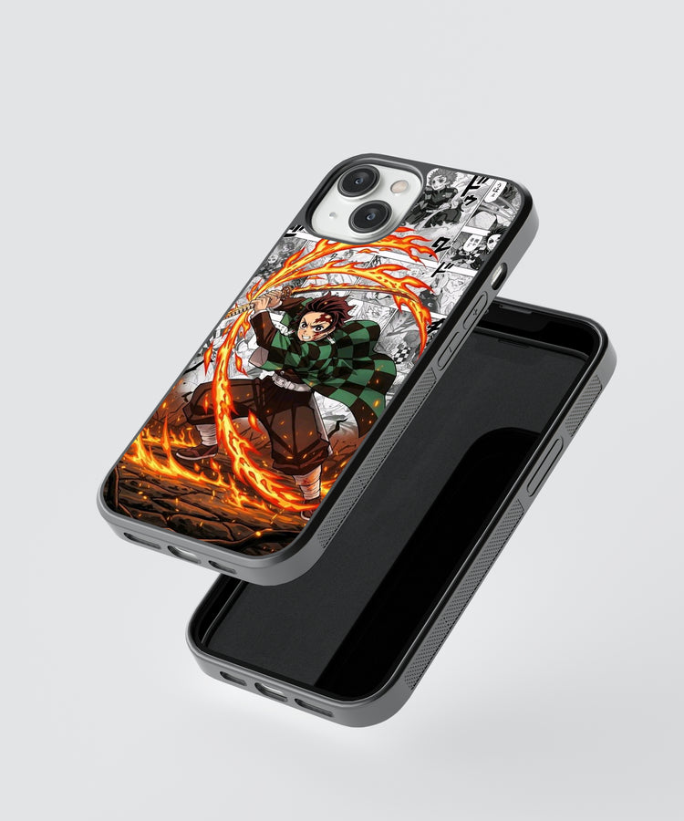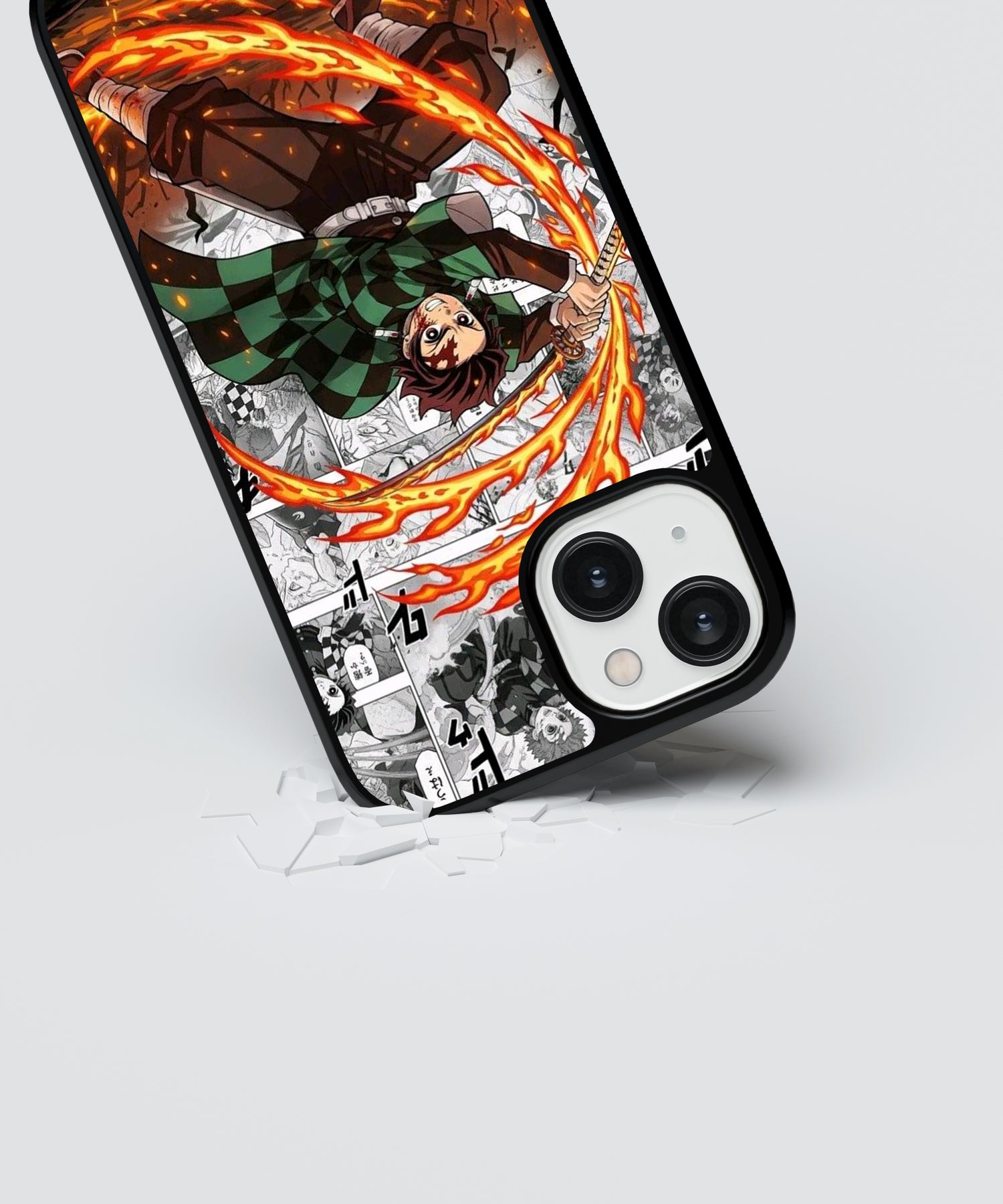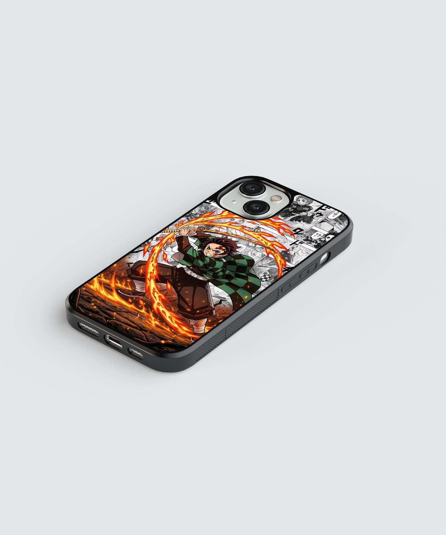Unleash the power of fire with the Flame Blade Warrior Glass Phone Case, featuring an intense anime-style swordsman in a blazing flame arc attack with dramatic manga-style background panels. This design captures speed, power, and warrior spirit, making it a perfect choice for anime and action lovers.