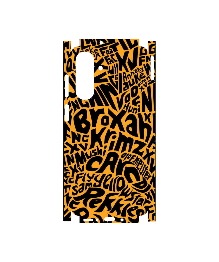 Crafted for those who belong to the Yellow Faction (a collective of free-thinkers and digital nomads), the skin features a chaotic yet structured word-mosaic design in high-contrast black and vibrant yellow. The bold, layered typography—which includes words like "BROXAN," "KŌAN," and "YELLOW"—serves as a visual manifesto, hinting at hidden messages and proprietary code.