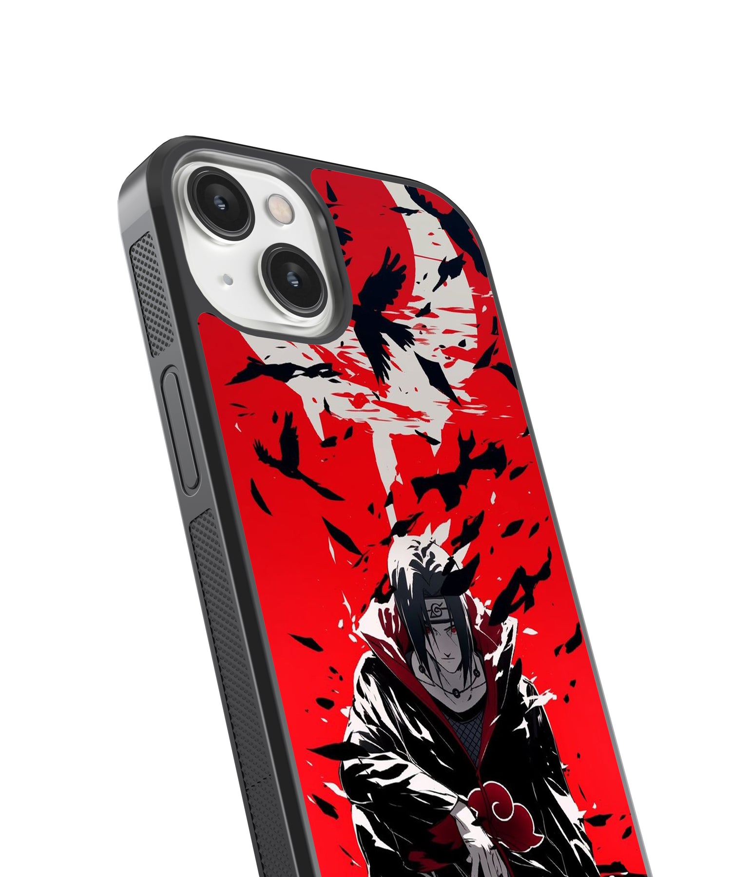 Unleash your dark anime aesthetic with the Crimson Raven Shadow Glass Phone Case, featuring a powerful red blood-moon background, shadow warrior artwork, and flying ravens that symbolize strength, mystery, and dominance.