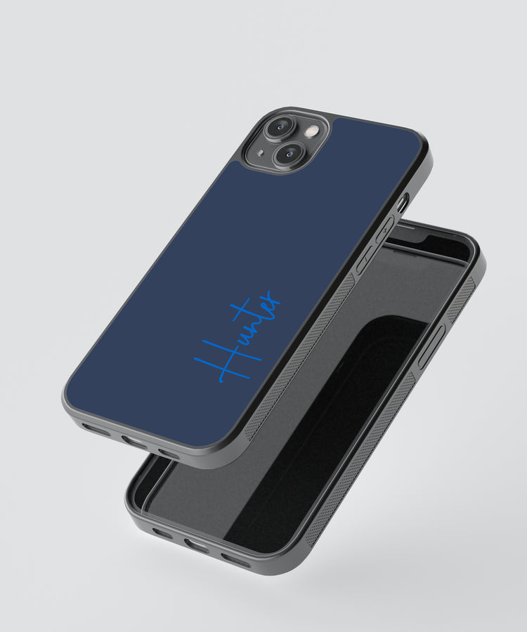 Custom Name Navy Blue Glass Case – Personalized Premium Phone Cover