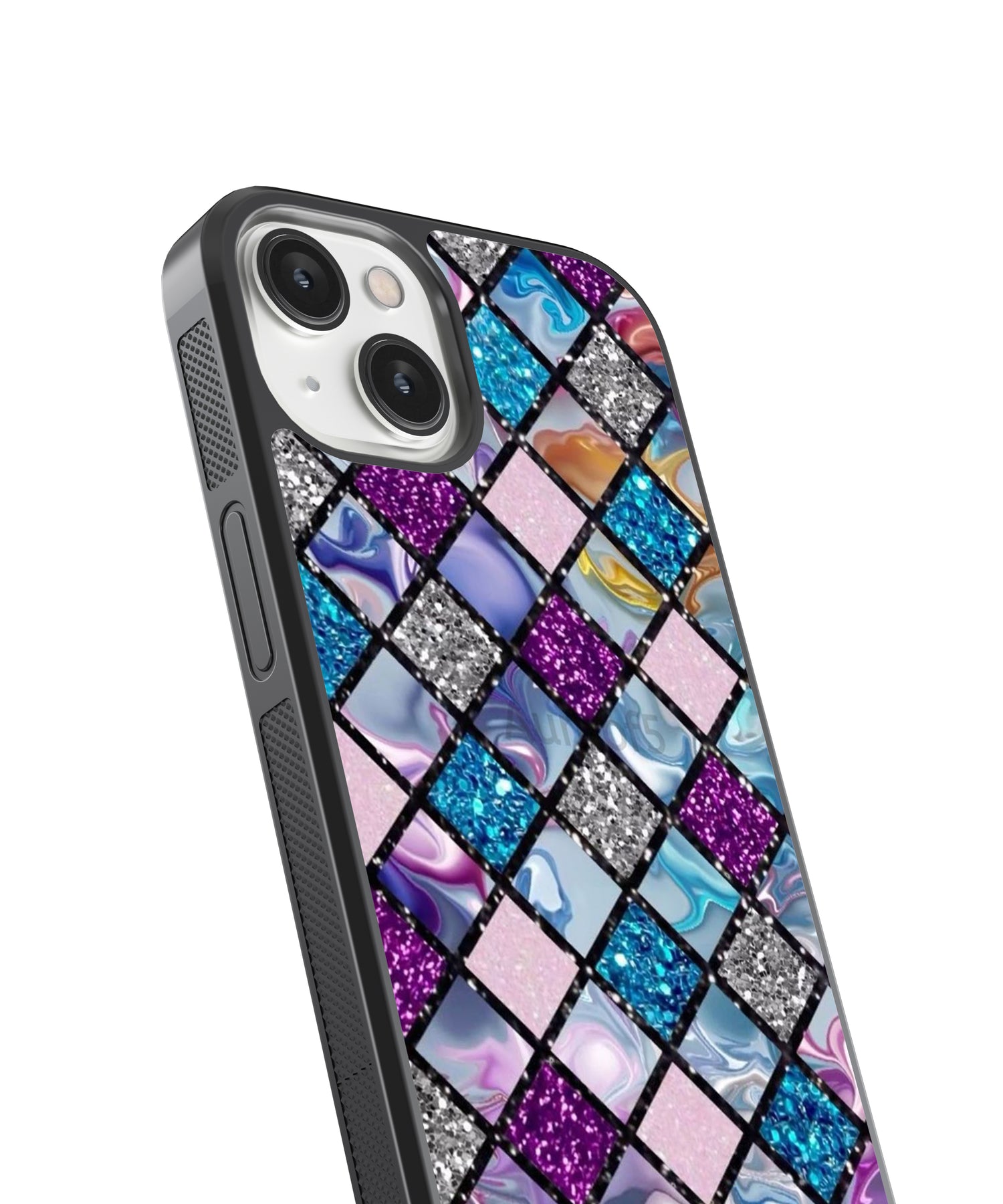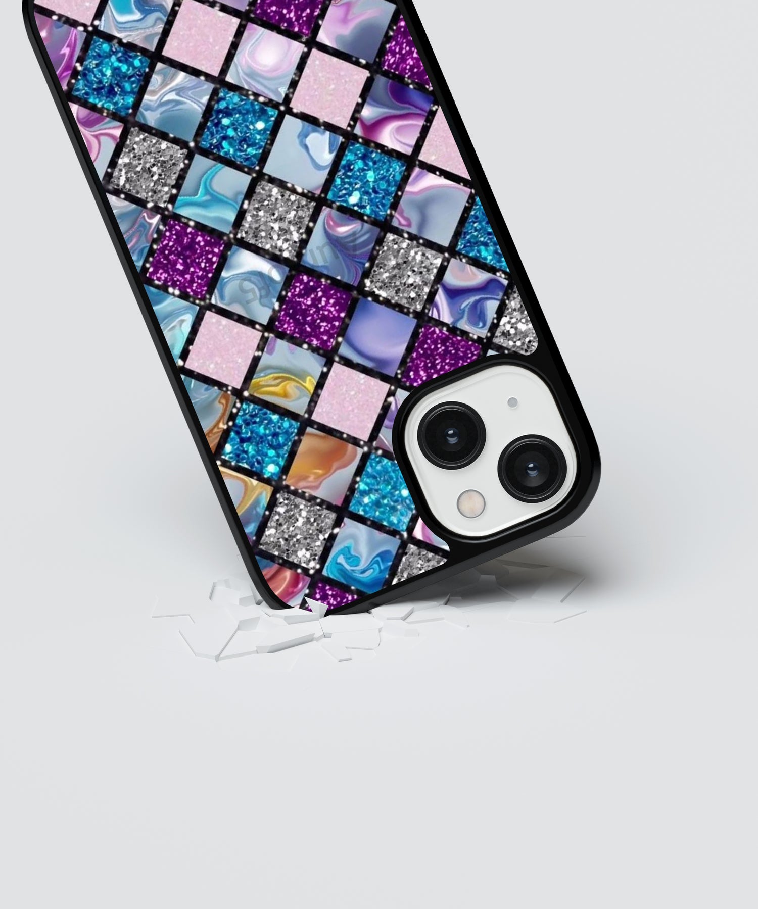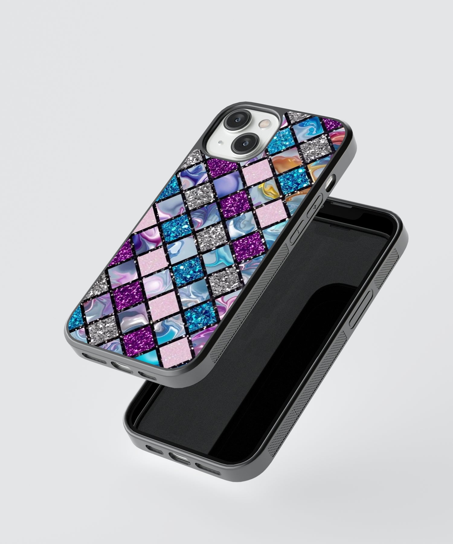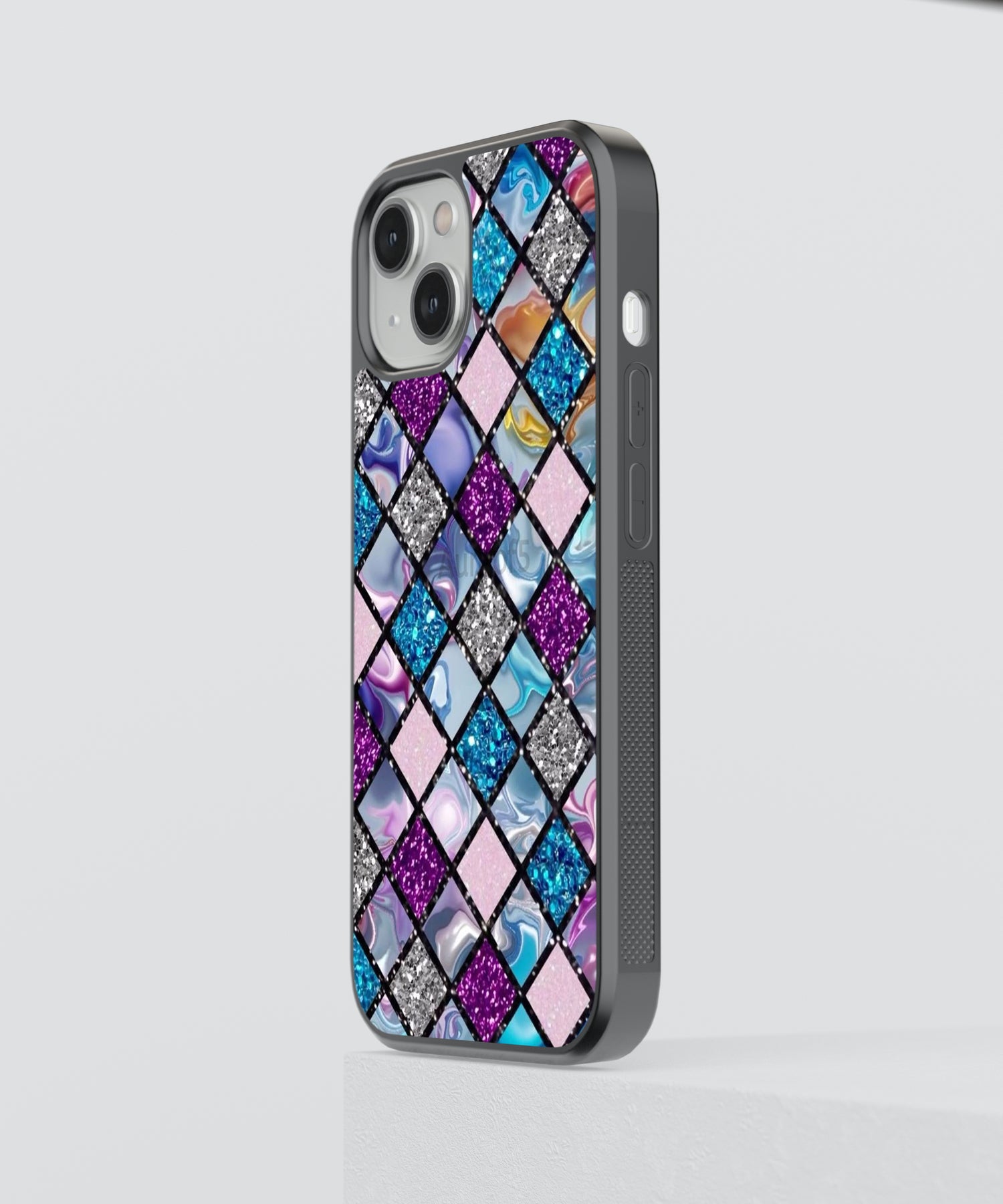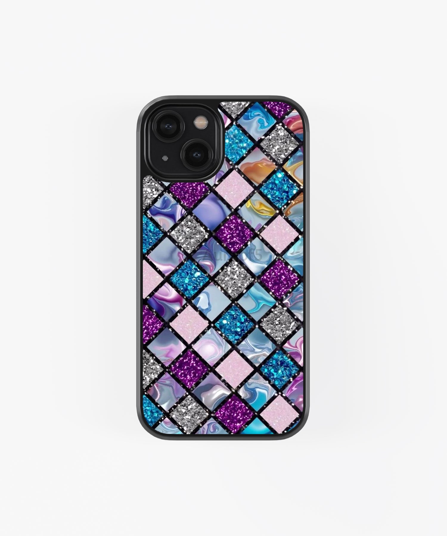 Add a bold sparkle to your everyday style with the Diamond Mosaic Luxe Glass Phone Case. Featuring a stunning checkered mosaic pattern with glitter, marble swirls, and crystal textures, this case delivers a perfect blend of luxury, glamour, and modern design.