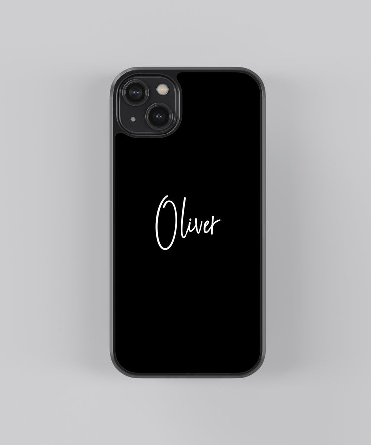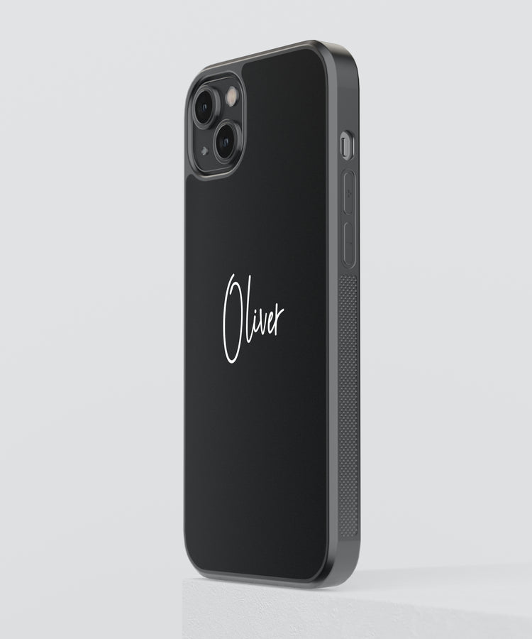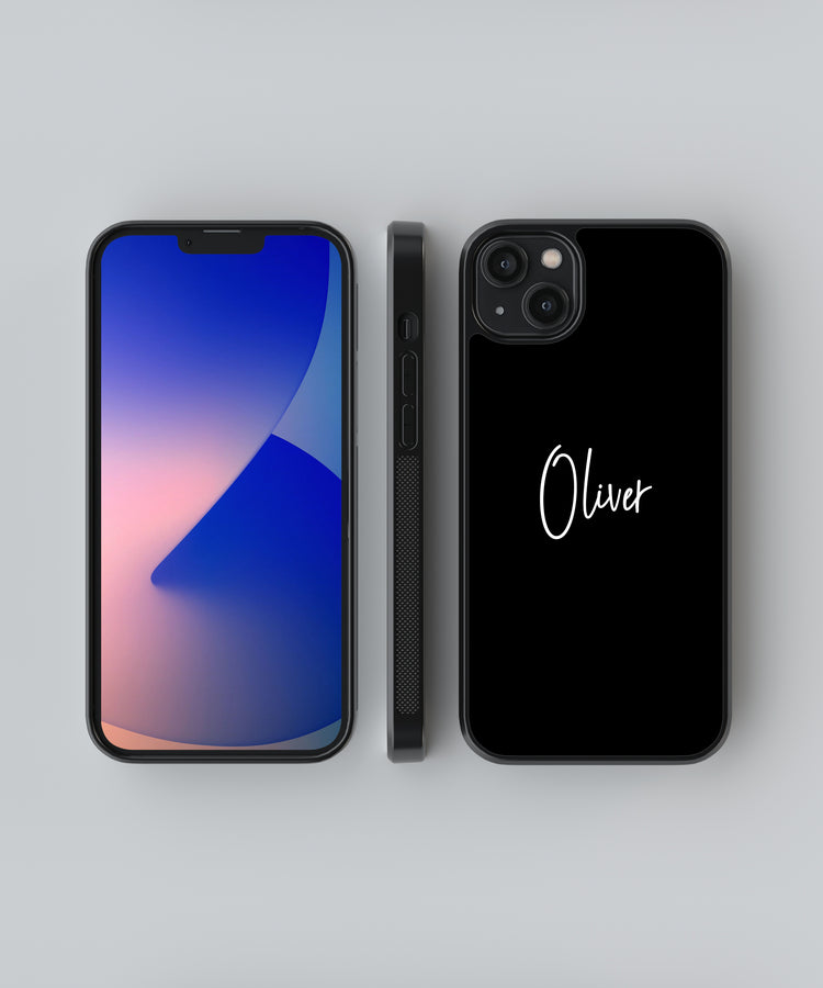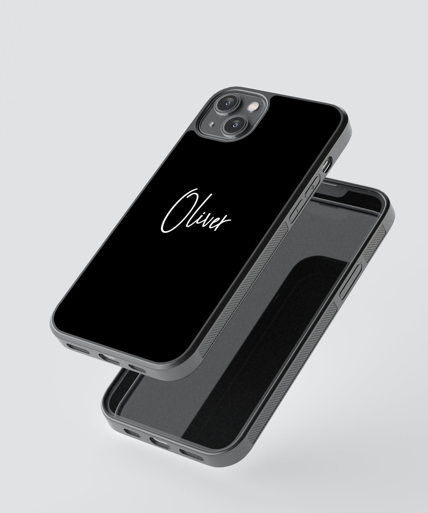 Experience timeless sophistication with the Black Elegance Glass Case – Oliver Edition. Featuring a deep matte-black background paired with a clean white handwritten name, this case delivers a luxurious minimalist look that never goes out of style.