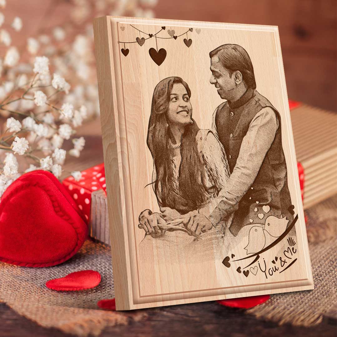 Personalized Wooden Photo Engraved Plaque – “You & Me” Edition