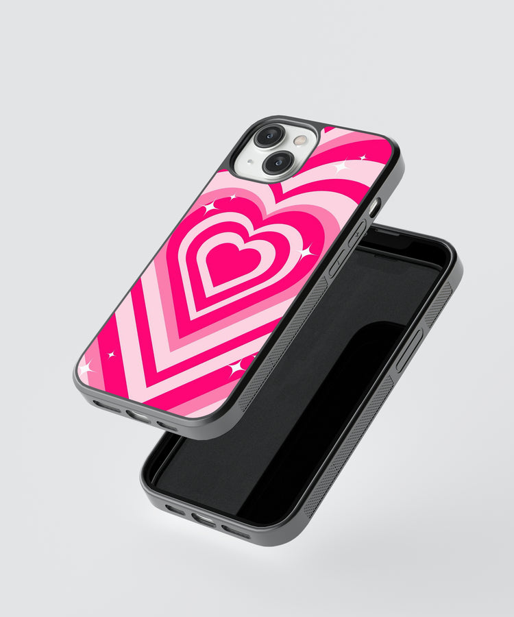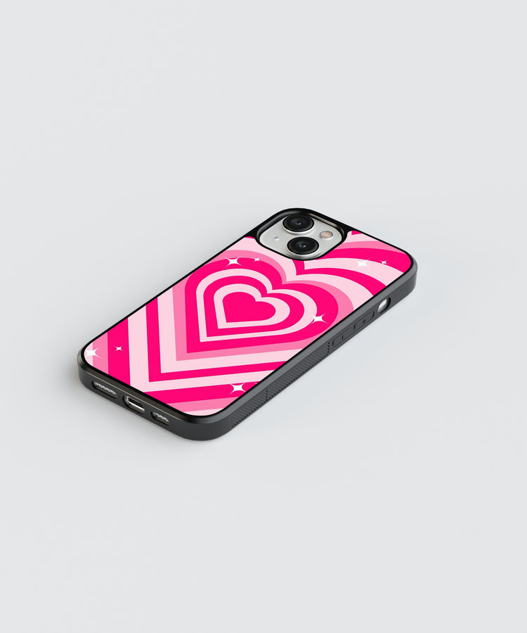 Pink theme hearting glass phone case