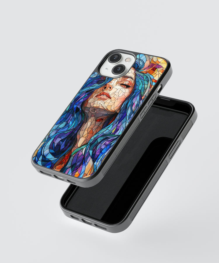 Stained Glass Muse Glass Phone Case – Vibrant Artistic Portrait Protection